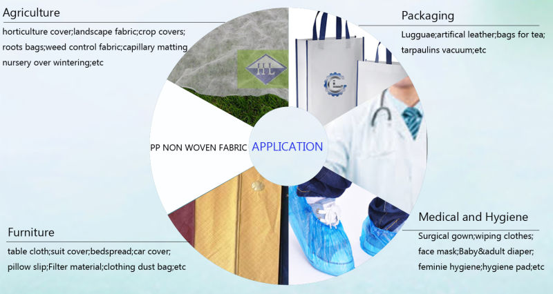 De niet geweven stoffen zijn vochtbestendig, in te ademen, flexibel, chemisch afbreekbaar, niet-toxisch en niet licht, niet verbranding die, kleurrijke, lage rekupereerbare prijs, enz. Irriteren. Het wordt wijd gebruikt op vele gebieden, zoals Landbouw, het Ziekenhuis, Huis…